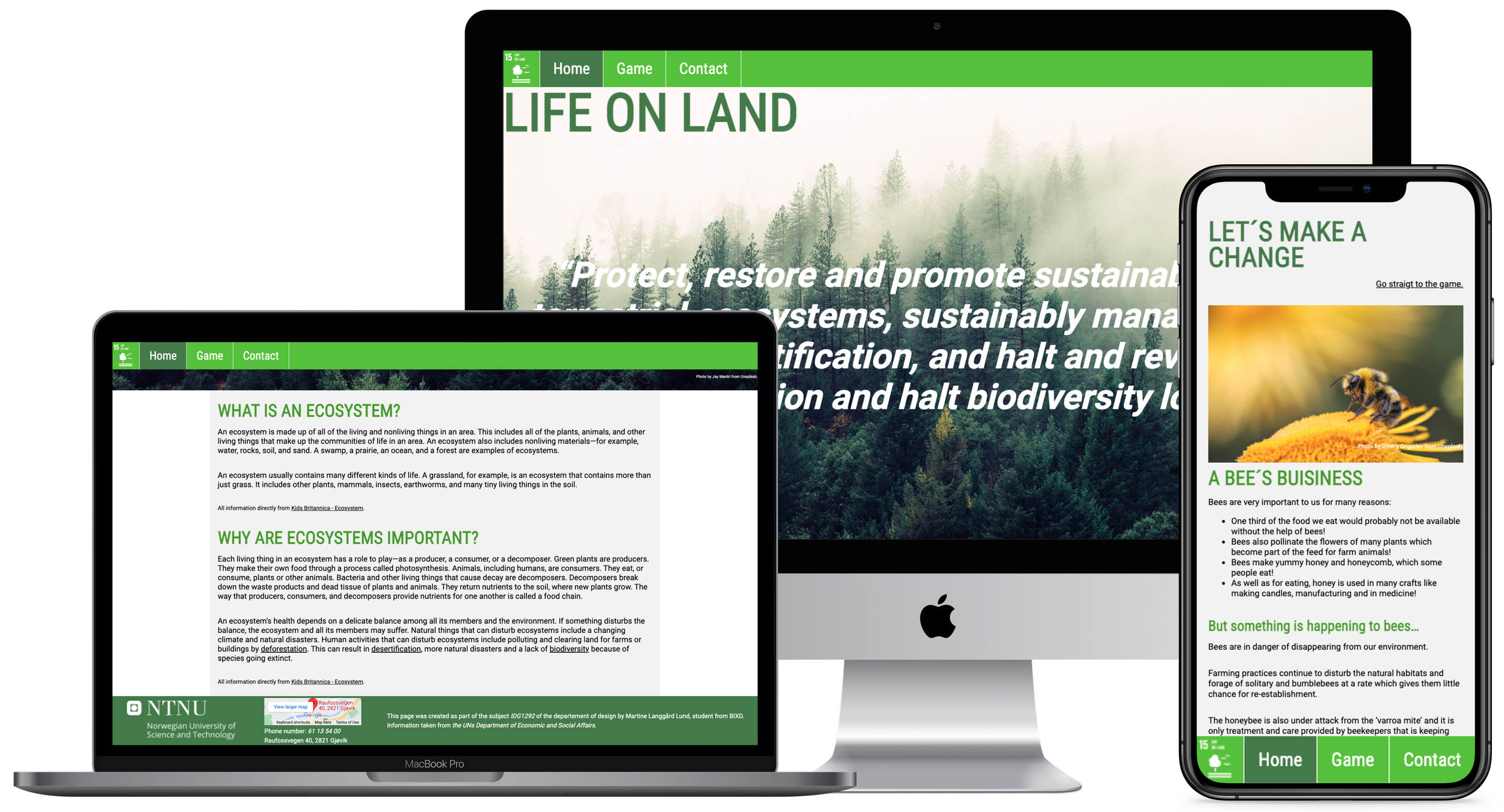 Som del av læreplanverket skal barn på barneskolen lære om FNs bærekraftsmål. Målet med dette prosjektet er å gjøre ett av bærekraftsmålene lettere tilgjengelig og mer interessant for barn. Nettstedet skulle inneholde blant annet en Call to Action og et spill, i tillegg til å være utformet for både brede PC-skjermer og smalere mobil-skjermer.